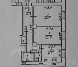 Изолированные комнаты: 17 и 14 м2, кухня 10 м2.