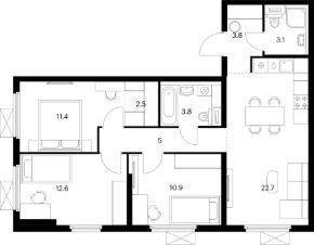 Продаётся 3-комн. квартира площадью 75,8 кв.м на 17 этаже 25 этажного дома (Корпус 16.3, Секция 3) проекта ПИК Ярославский. Светлый просторный подъезд на уровне земли, функциональная планировка, большие окна, c отделкой.