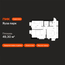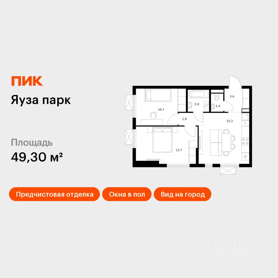 Продаётся 2-комн. квартира площадью 49,3 кв.м на 17 этаже 24 этажного дома (Корпус 10, Секция 1) проекта ПИК Яуза парк. Светлый просторный подъезд на уровне земли, функциональная планировка, большие окна, предчистовая отделка.