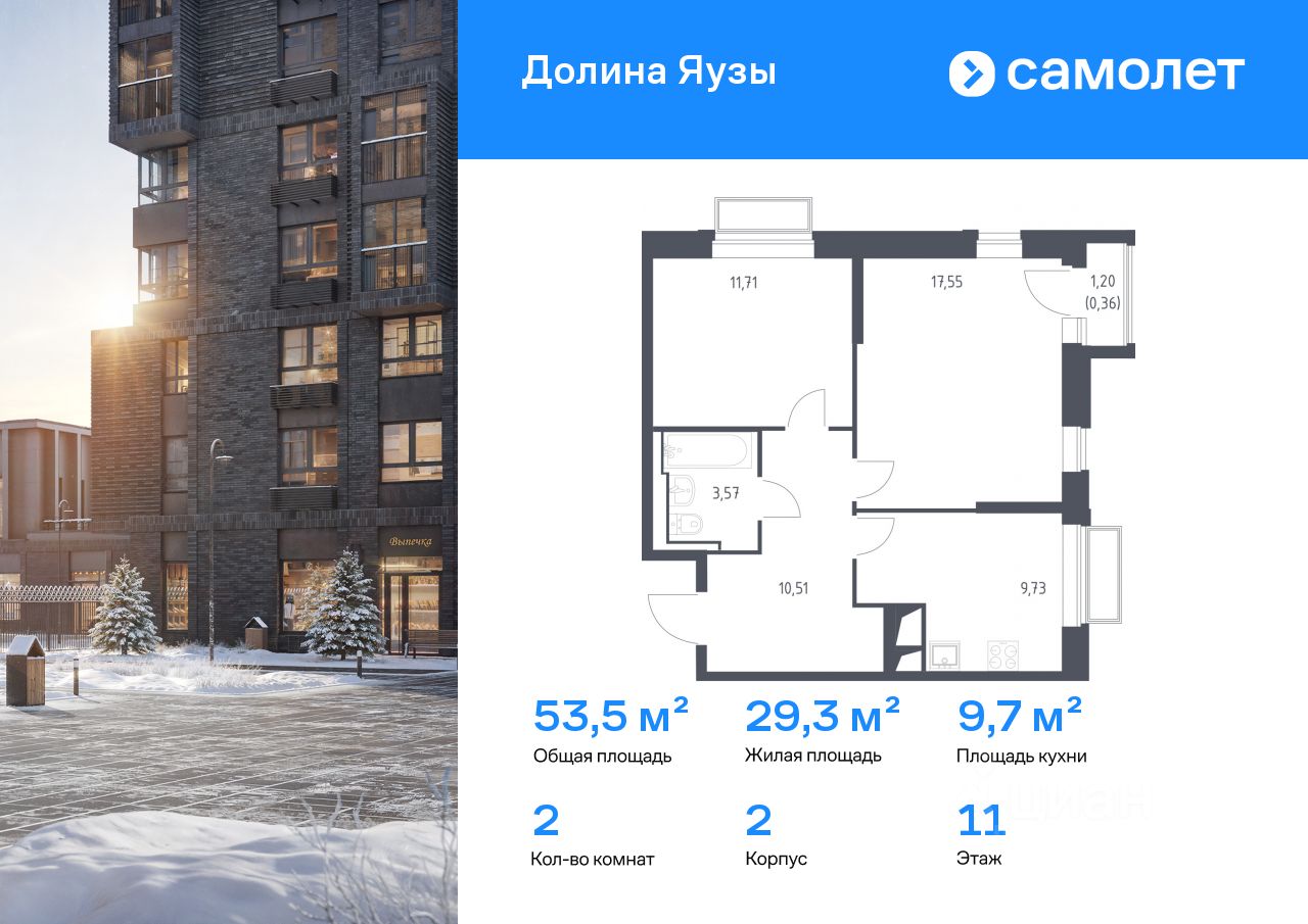 Строим кварталы для жизни с заботой о будущем. Предлагается 2-комнатная квартира комфорт-класса 53,5 кв.м в корпусе 2 на 11 этаже, в ЖК "Долина Яузы"