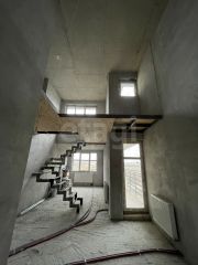 Предлагаем Вашему вниманию уникальную квартиру-студию на третьем этаже современного трехэтажного дома. Ключевой особенностью объекта являются потолки высотой 5,5 метров, что позволило обустроить полноценный второй уровень, эффективно увеличив жилое пространство.