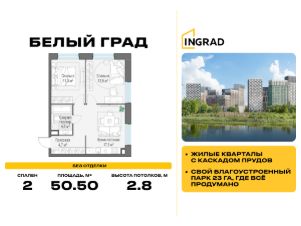 Пряма продажа от застройщика. В жилом квартале комфорт-класса "Белый Град" (застройщик ГК Инград) продаётся 2-спальная квартира площадью 50.50 кв.м без отделки. Квартира расположена на 3 этаже 20-этажного дома, корпус 12.1.