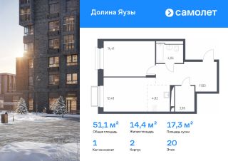 Строим кварталы для жизни с заботой о будущем. Предлагается 1-комнатная квартира комфорт-класса 51,1 кв.м в корпусе 2 на 20 этаже, в ЖК "Долина Яузы"