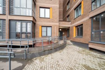 Дом спроектирован в форме нескольких уютных закрытых дворов. Наша квартира - в угловом подъезде, расположенном вдали от основного пешеходного трафика.