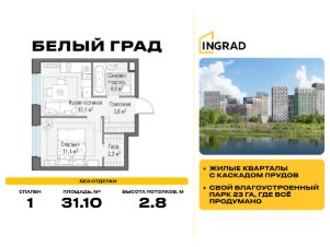 Пряма продажа от застройщика. В жилом квартале комфорт-класса "Белый Град" (застройщик ГК Инград) продаётся 1-спальная квартира площадью 31.10 кв.м без отделки. Квартира расположена на 18 этаже 20-этажного дома, корпус 11.2.