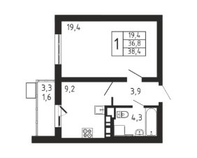 Продаётся 1-комнатная квартира в строящемся доме (Корпус 4), срок сдачи: II-кв. 2026, общей площадью 38.4 кв.м., на 5 этаже.