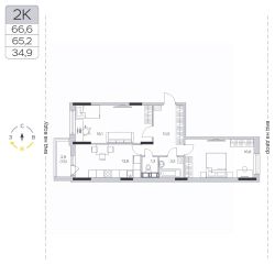 Продаётся 2-комнатная квартира в сданном доме (Корпус 13), срок сдачи: IV-кв. 2023, общей площадью 65.2 кв.м., на 7 этаже.