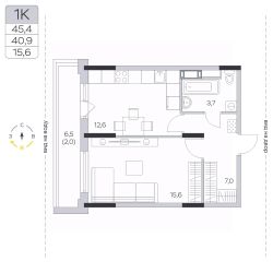 Продаётся 1-комнатная квартира в сданном доме (Корпус 13), срок сдачи: IV-кв. 2023, общей площадью 40.9 кв.м., на 8 этаже.