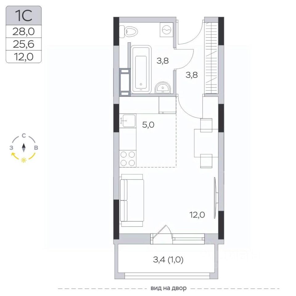 Продаётся студия в сданном доме (Корпус 13), срок сдачи: IV-кв. 2023, общей площадью 25.5 кв.м., на 9 этаже.