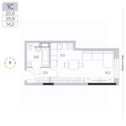 Продаётся студия в сданном доме (Корпус 13), срок сдачи: IV-кв. 2023, общей площадью 25.8 кв.м., на 8 этаже.