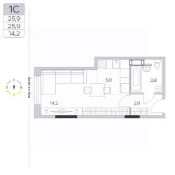 Продаётся студия в сданном доме (Корпус 15), срок сдачи: III-кв. 2024, общей площадью 25.7 кв.м., на 5 этаже.