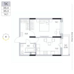 Продаётся 1-комнатная квартира в сданном доме (Корпус 15), срок сдачи: III-кв. 2024, общей площадью 36.3 кв.м., на 8 этаже.