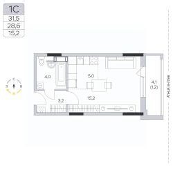 Продаётся студия в сданном доме (Корпус 15), срок сдачи: III-кв. 2024, общей площадью 28.7 кв.м., на 9 этаже.