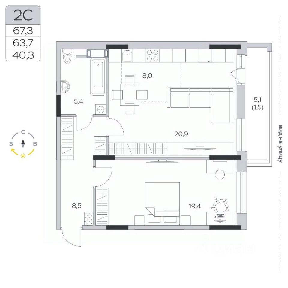 Продаётся 2-комнатная квартира в сданном доме (Корпус 15), срок сдачи: III-кв. 2024, общей площадью 64 кв.м., на 5 этаже.