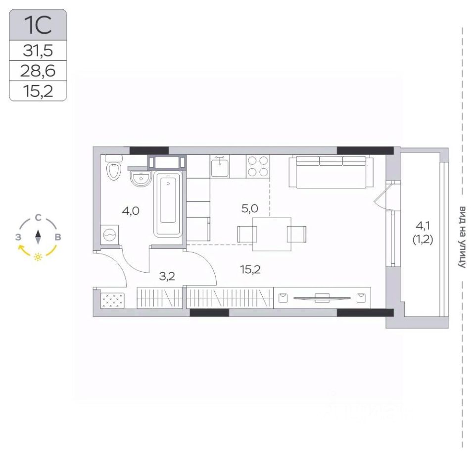 Продаётся студия в сданном доме (Корпус 15), срок сдачи: III-кв. 2024, общей площадью 28.8 кв.м., на 5 этаже.