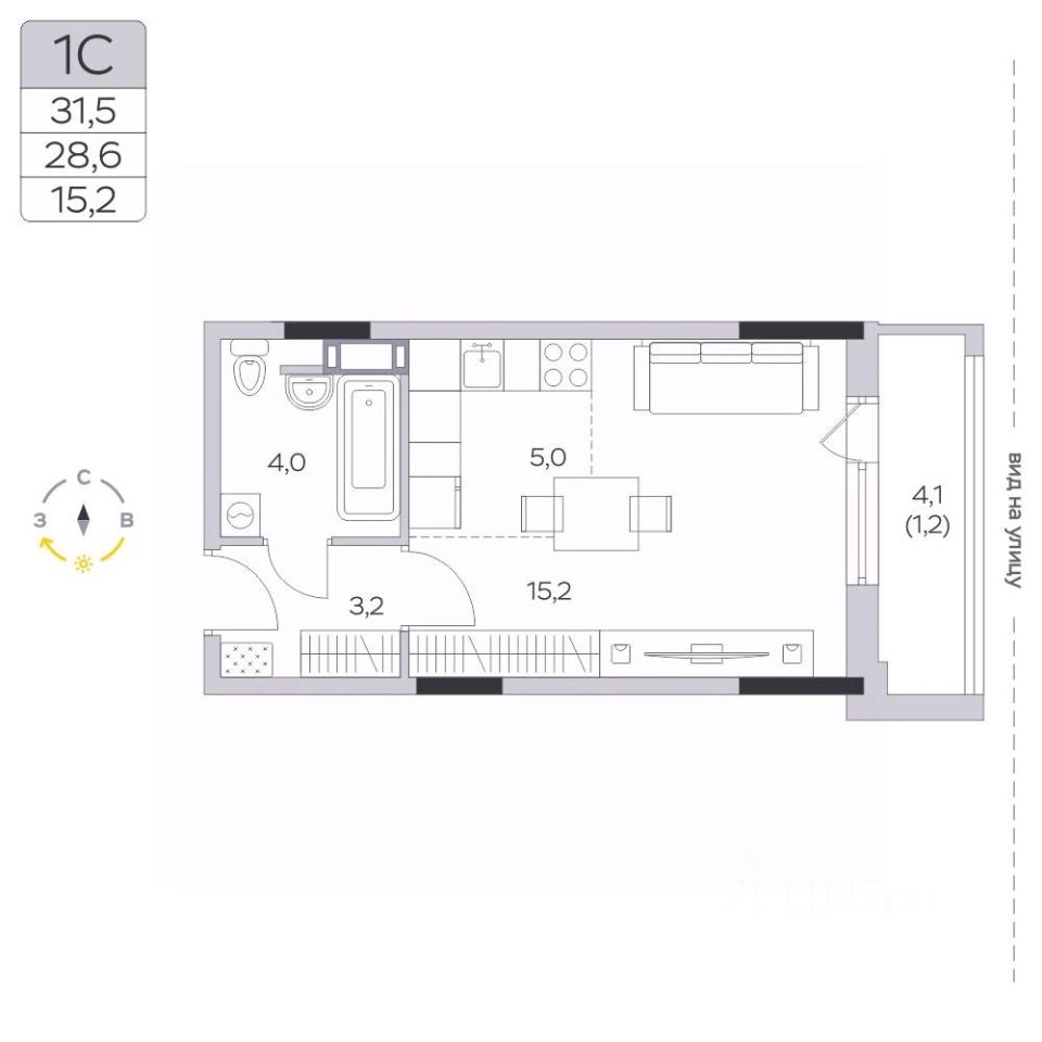 Продаётся студия в сданном доме (Корпус 15), срок сдачи: III-кв. 2024, общей площадью 28.6 кв.м., на 7 этаже.