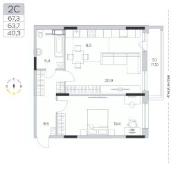 Общая площадь63,7 м²