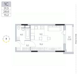 Продаётся студия в сданном доме (Корпус 15), срок сдачи: III-кв. 2024, общей площадью 28.6 кв.м., на 8 этаже.
