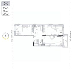 Продаётся 2-комнатная квартира в сданном доме (Корпус 15), срок сдачи: III-кв. 2024, общей площадью 66.9 кв.м., на 7 этаже.