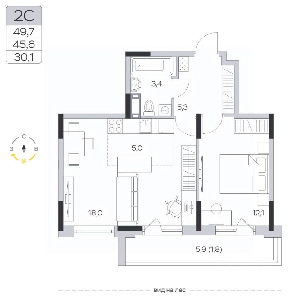 Продаётся 1-комнатная квартира в сданном доме (Корпус 15), срок сдачи: III-кв. 2024, общей площадью 45.6 кв.м., на 8 этаже.