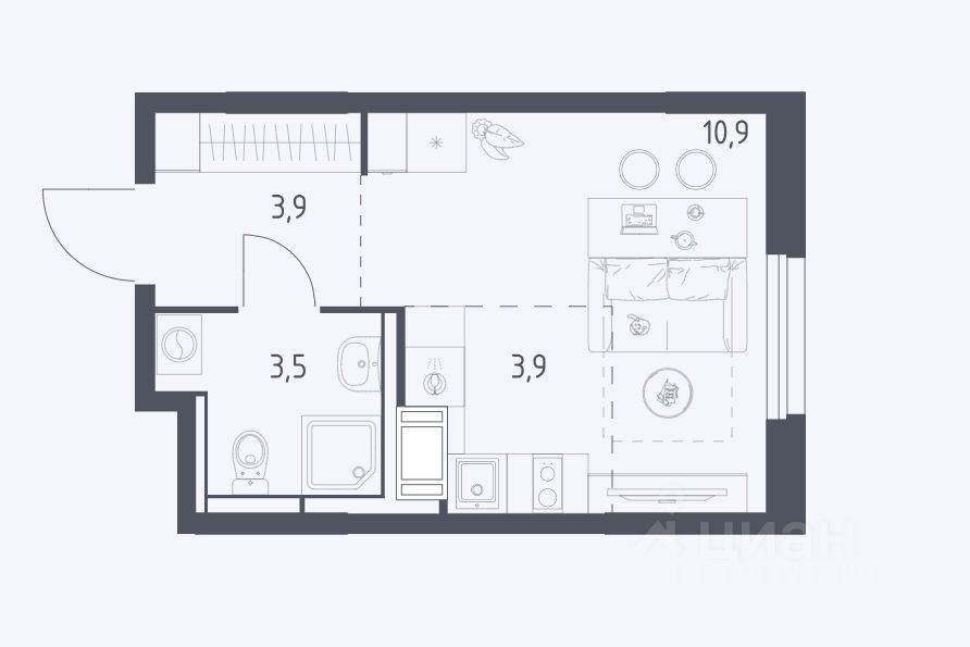3,9 м²