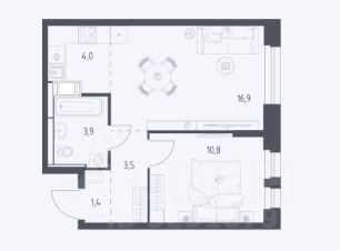 39,6 м²