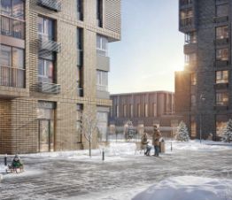 У каждого дома будет собственный двор-сад, где посадят плодовые и вечнозеленые деревья и кустарники. Территория около жилого комплекса закрыта от машин и посторонних и круглосуточно охраняется.
