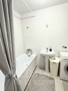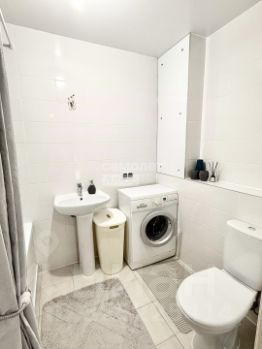 Светлая ванная комната с туалетом и стиральной машиной Siemens. Дополнительно предусмотрен второй туалет — практичное решение для семьи в утренние и вечерние часы пик.