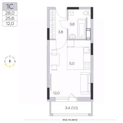 Продаётся студия в сданном доме (Корпус 13), срок сдачи: IV-кв. 2023, общей площадью 25.6 кв.м., на 7 этаже.