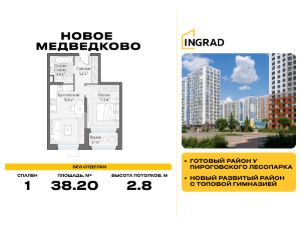 Прямая продажа от застройщика. В жилом квартале, расположенном в северо-западной части города Мытищи, продаётся 1-спальная квартира площадью 38.20 кв.м без отделки. Квартира расположена на 15 этаже 18-этажного дома, корпус 41, в жилом квартале комфорт-класса Новое Медведково (застройщик ГК Инград).