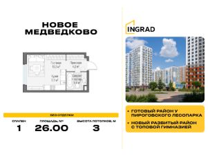 Прямая продажа от застройщика. В жилом квартале, расположенном в северо-западной части города Мытищи, продаётся студия площадью 26.00 кв.м без отделки. Квартира расположена на 11 этаже 11-этажного дома, корпус 35, в жилом квартале комфорт-класса Новое Медведково (застройщик ГК Инград).
