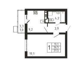 Продаётся 1-комнатная квартира в строящемся доме (Корпус 4), срок сдачи: II-кв. 2026, общей площадью 37.5 кв.м., на 9 этаже.