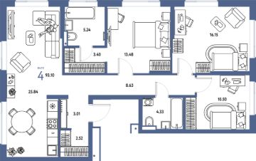 Продаётся 4-комнатная квартира в строящемся доме (Дом Перов), срок сдачи: III-кв. 2026, общей площадью 93.1 кв.м., на 2 этаже. Многоэтажные жилые дома с объектами инфраструктуры, расположенные по адресу: Московская область, г.о. Мытищи, г.Мытищи, мкр. 18Б, ул. Комарова.
