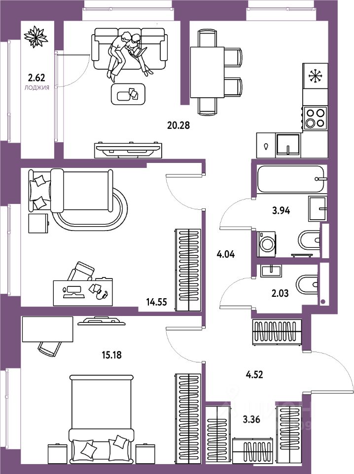 Продаётся 3-комнатная квартира в строящемся доме (Дом Перов), срок сдачи: III-кв. 2026, общей площадью 70.52 кв.м., на 18 этаже. Многоэтажные жилые дома с объектами инфраструктуры, расположенные по адресу: Московская область, г.о. Мытищи, г.Мытищи, мкр. 18Б, ул. Комарова.