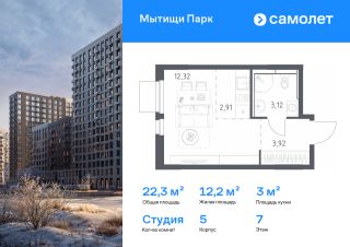 Строим кварталы для жизни с заботой о будущем. Предлагается квартира студия комфорт-класса 22,27 кв.м в корпусе 5 на 7 этаже, в ЖК "Мытищи Парк"