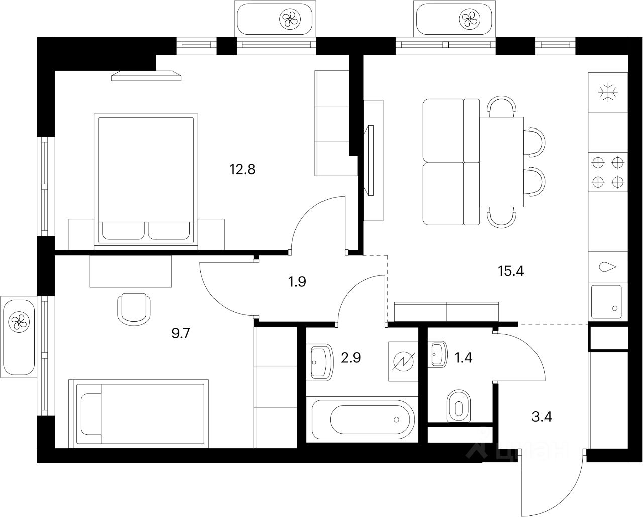 Продаётся 2-комн. квартира площадью 47,5 кв.м на 11 этаже 24 этажного дома (Корпус 12, Секция 1) проекта ПИК Яуза парк. Светлый просторный подъезд на уровне земли, функциональная планировка, большие окна, предчистовая отделка.