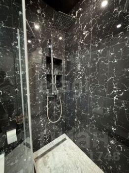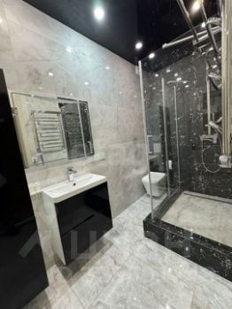 Большая санузел: Просторная ванная комната, оборудованная душевой кабиной.