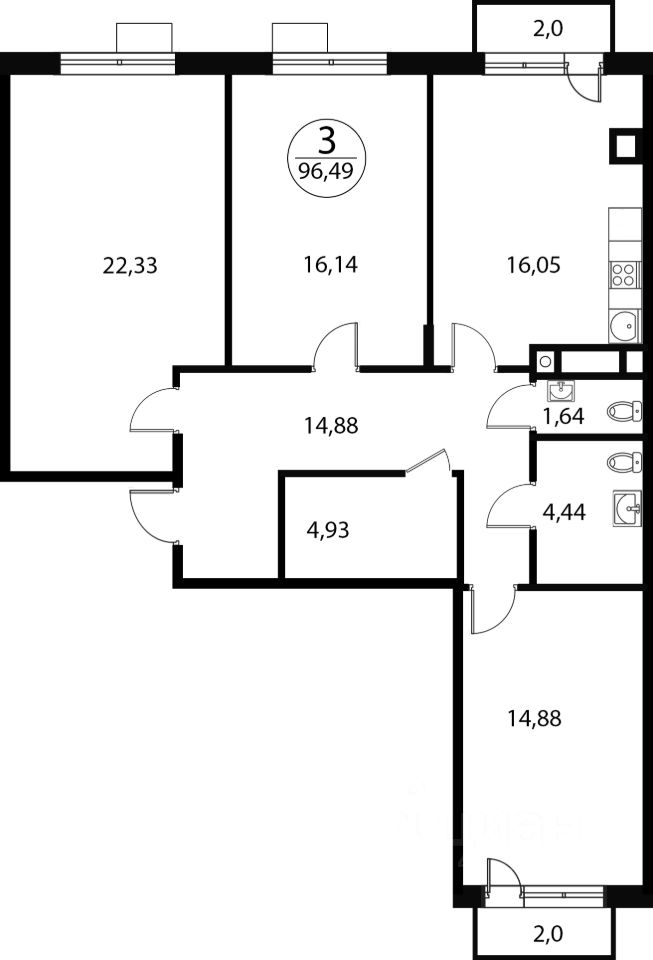 Продаётся 3-комнатная квартира в строящемся доме (Корпус 1), срок сдачи: IV-кв. 2026, общей площадью 96.49 кв.м., на 4 этаже. Расположение, транспортная доступность