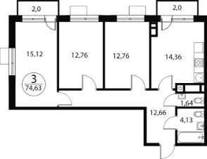 Продаётся 3-комнатная квартира в строящемся доме (Корпус 5), срок сдачи: IV-кв. 2026, общей площадью 74.63 кв.м., на 4 этаже. Расположение, транспортная доступность