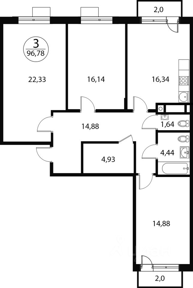 Продаётся 3-комнатная квартира в строящемся доме (Корпус 2), срок сдачи: IV-кв. 2026, общей площадью 96.78 кв.м., на 3 этаже. Расположение, транспортная доступность