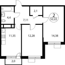 Продаётся 2-комнатная квартира в строящемся доме (Корпус 2), срок сдачи: IV-кв. 2026, общей площадью 52.22 кв.м., на 3 этаже. Расположение, транспортная доступность