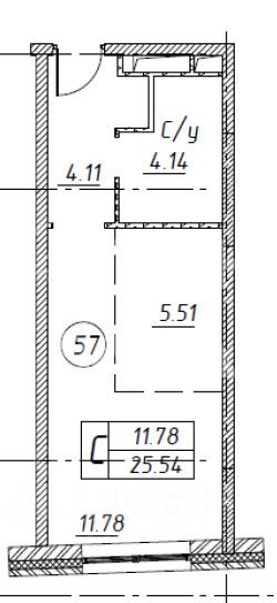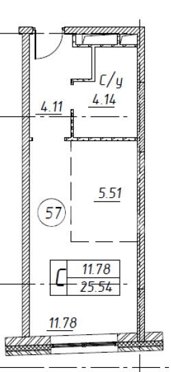Общая площадь квaртиры — 25,5 кв. м.
