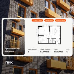 Продаётся 2-комн. квартира площадью 57,5 кв.м на 17 этаже 25 этажного дома (Корпус 2.5, Секция 2) проекта ПИК Ярославский квартал. Светлый просторный подъезд на уровне земли, функциональная планировка, большие окна, c отделкой.