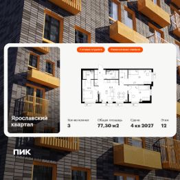 Продаётся 3-комн. квартира площадью 77,3 кв.м на 12 этаже 25 этажного дома (Корпус 2.4, Секция 1) проекта ПИК Ярославский квартал. Светлый просторный подъезд на уровне земли, функциональная планировка, большие окна, c отделкой.