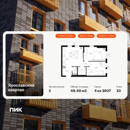 Продаётся 2-комн. квартира площадью 49,4 кв.м на 23 этаже 25 этажного дома (Корпус 2.4, Секция 1) проекта ПИК Ярославский квартал. Светлый просторный подъезд на уровне земли, функциональная планировка, большие окна, c отделкой.