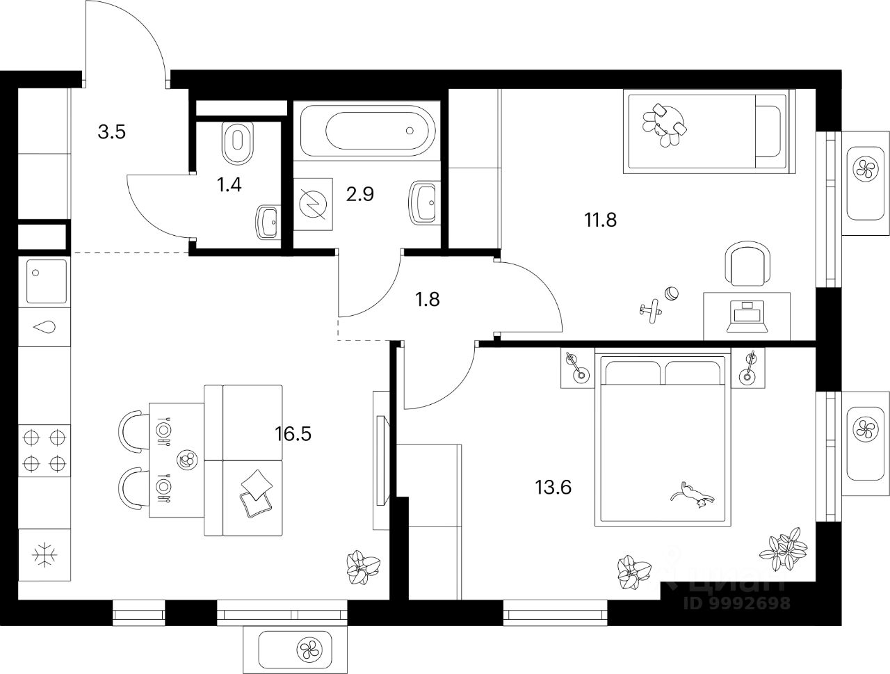 Продаётся 2-комн. квартира площадью 51,5 кв.м на 22 этаже 25 этажного дома (Корпус 2.4, Секция 1) проекта ПИК Ярославский квартал. Светлый просторный подъезд на уровне земли, функциональная планировка, большие окна, c отделкой.