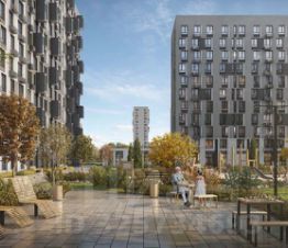 Территория комплекса будет огорожена. Чтобы сделать дворы уютнее, мы посадим крупные деревья, кустарники и другие растения. Также обустроим пешеходный бульвар с центральной площадью для проведения мероприятий.