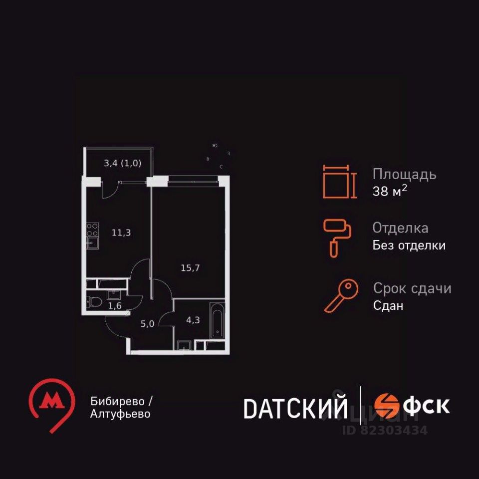 Последние квартиры в ЖК "Датский квартал"! Продаётся 1-к квартира номер 413 общей площадью 38.9 кв.м. на 19-м этаже 22 этажного здания. Без отделки. Цена с учётом скидки. Особенности квартиры: Дополнительные условия: - Возможна покупка по программе Trade-In - Живите сейчас и платите потом - гибкие условия приобретения - Максимальные скидки при 100% оплате - Просторная спальня, в которой можно разместить большую кровать. - Линейная планировка - максимальная функциональность и удобство. - Увеличенная ширина окна/окон - больше света и визуального простора. - Раздельный санузел - больше удобства для всех членов семьи. - Гибкая планировка - создайте пространство по своему вкусу. - Можно оборудовать рабочее место - комфорт для работы и учёбы. - Балкон - открытое пространство для отдыха. Информация о комплексе: Ощутите прелесть жизни в маленьком европейском городке, не выезжая на пределы Москвы. Здесь всё рядом и продумано для вас: магазины, булочные, прачечные, аптеки и салоны красоты в шаговой доступности. Наличие кладовых позволит вам поддерживать идеальный порядок и уют! Мы учли каждую мелочь, чтобы вы могли наслаждаться повседневной жизнью- Двор без машин, закрытое, безопасное, охраняемое место с удобным доступом для вашего авто, более чистый воздух и гарантированное место для стоянки - и это далеко не все преимущества наличия подземного паркинга. Наличие кладовых позволит вам поддерживать идеальный порядок и уют в вашей квартире! Родители самых маленьких жильцов будут в восторге от колясочных, запирающихся на магнитный замок. Весь малогабаритный семейный транспорт - коляска, велосипеды и самокаты - прекрасно будет ждать вас здесь до следующего раза. Вымыть колеса коляски или лапы питомцу можно в специальных помещениях, расположенных рядом с колясочной. Транспортная доступность: Менее 1км от МКАД: рядом Осташковское и Алтуфьевское шоссе; 15 минут до метро "Алтуфьево", "Бибирево", "Медведково"; 7 минут пешком до ближайшей остановки общественного транспорта. Внутренняя инфраструктура: - 2 муниципальных детских сада и муниципальная школа - Медицинский центр - Магазины, аптеки, салоны красоты, кафе, булочные на первых этажах комплекса