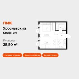 Продаётся 1-комн. квартира площадью 35,5 кв.м на 13 этаже 25 этажного дома (Корпус 1.4, Секция 1) проекта ПИК Ярославский квартал. Светлый просторный подъезд на уровне земли, функциональная планировка, большие окна, c отделкой.
