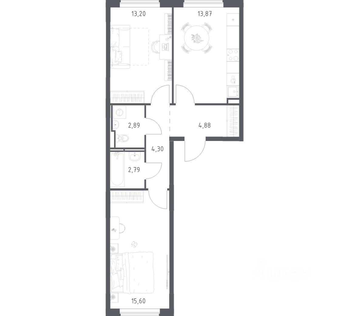 Строим кварталы для жизни с заботой о будущем. Предлагается 2-комнатная квартира комфорт-класса площадью 57,53 кв.м в корпусе 6 на 2-м этаже, в жилом комплексе "Мытищи Парк".